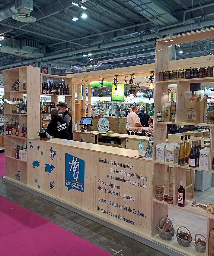 Réaliser un stand où l'on pouvait déguster des mets cuisinés et préparés sur place dans une vraie cuisine ouverte, ils sont réalisés avec des produits locaux que le client pouvait acheter au niveau de la boutique installée sur le stand. Un espace restauration avec mise en place de mange-debout pour une bonne dégustation. Une réserve centrale, un comptoir d'accueil, un espace VIP était également prévu ainsi qu'un espace pour les partenaires.