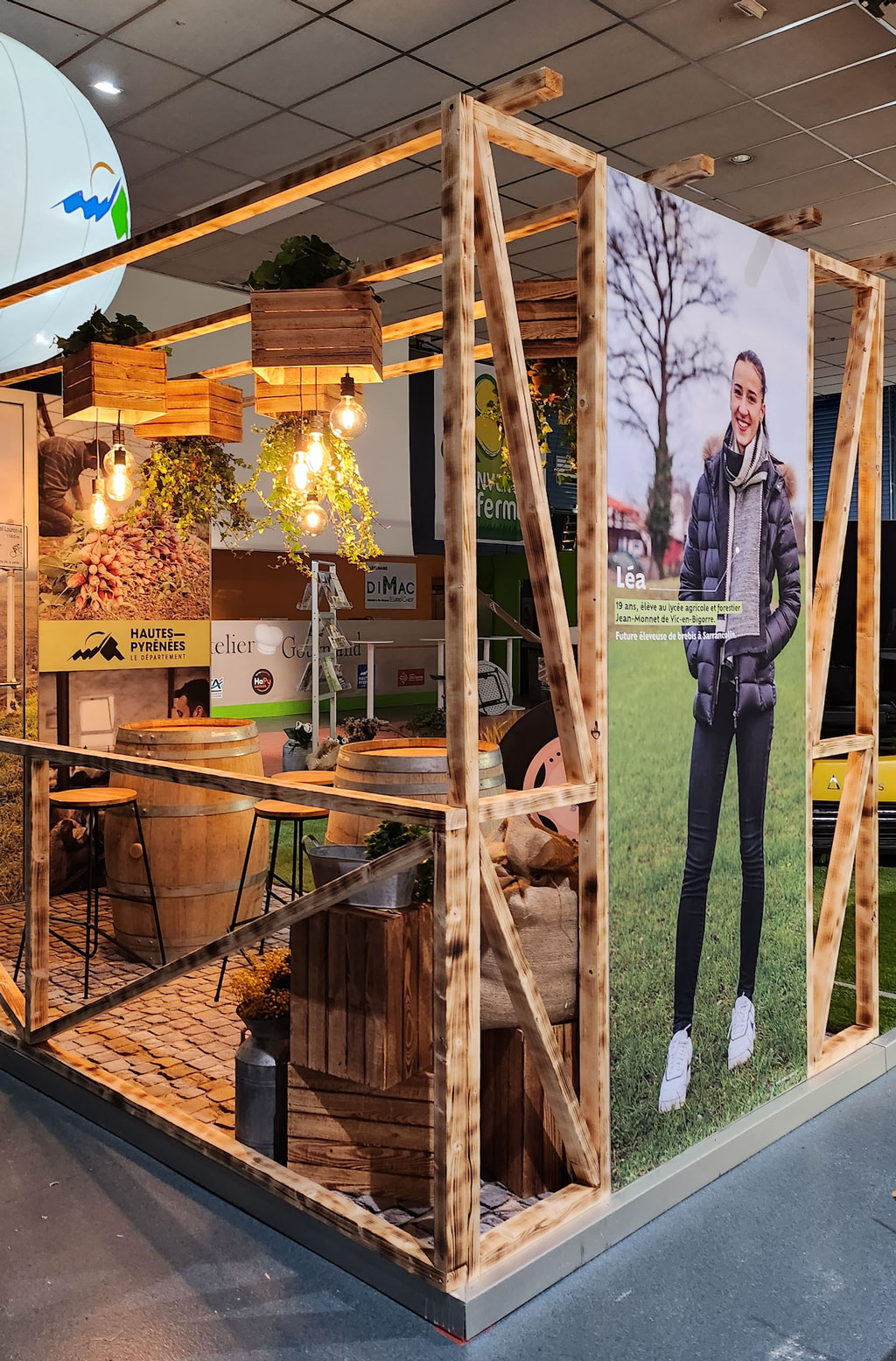 Réaliser un stand sur mesure de 36m2 dans un esprit de ferme agricole pour le Département des Hautes Pyrénées à l'occasion du salon de l'agriculture de Tarbes !