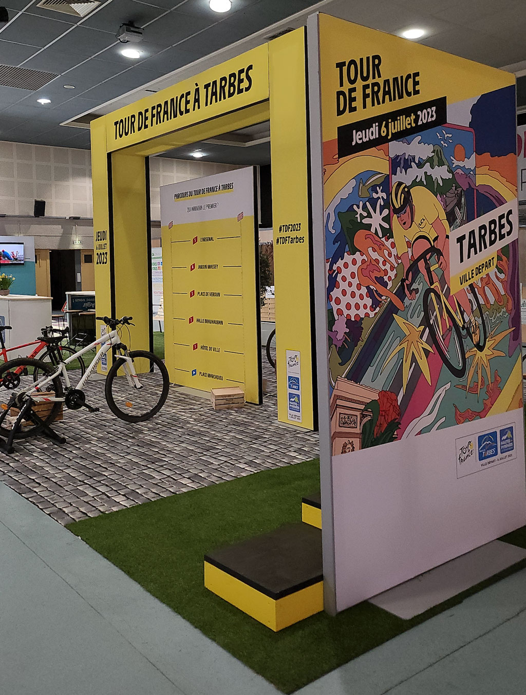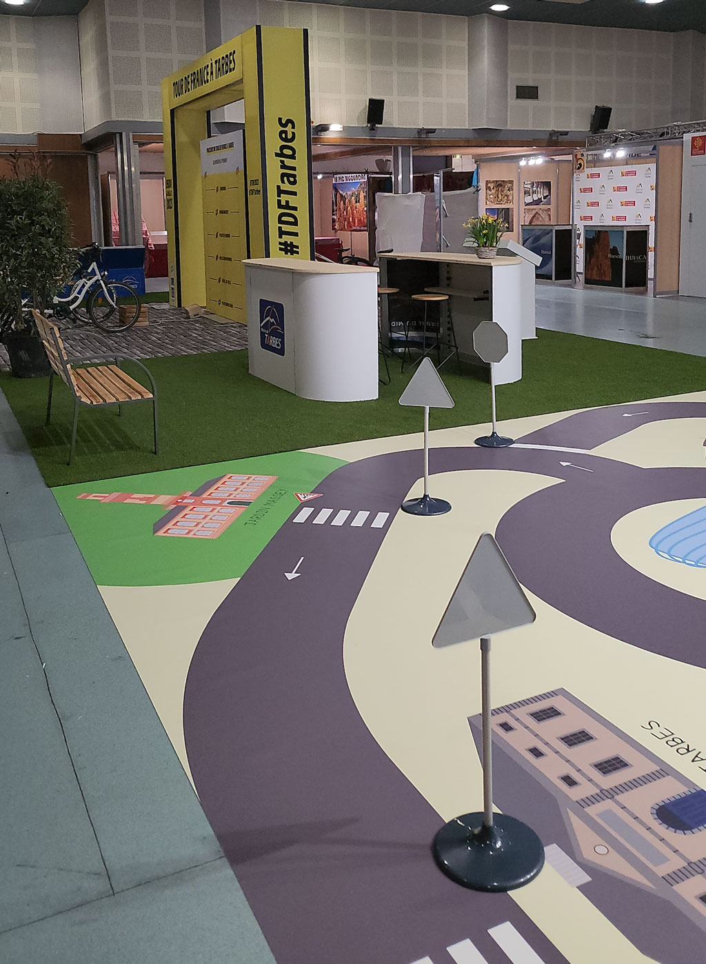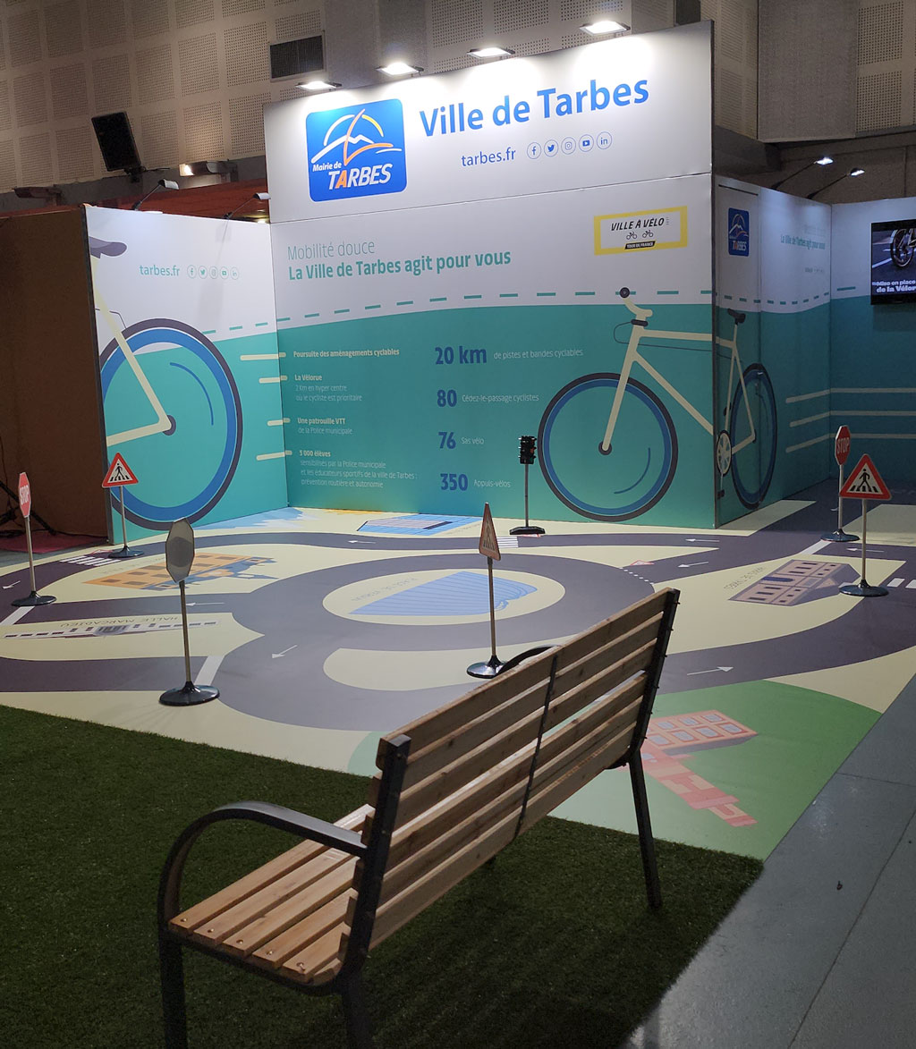 Réaliser un stand sur mesure de 120m2 pour mettre en avant la ville de Tarbes en tant que "ville de départ" du Tour de France 2023, pour le Salon Régional de l'Agriculture.
